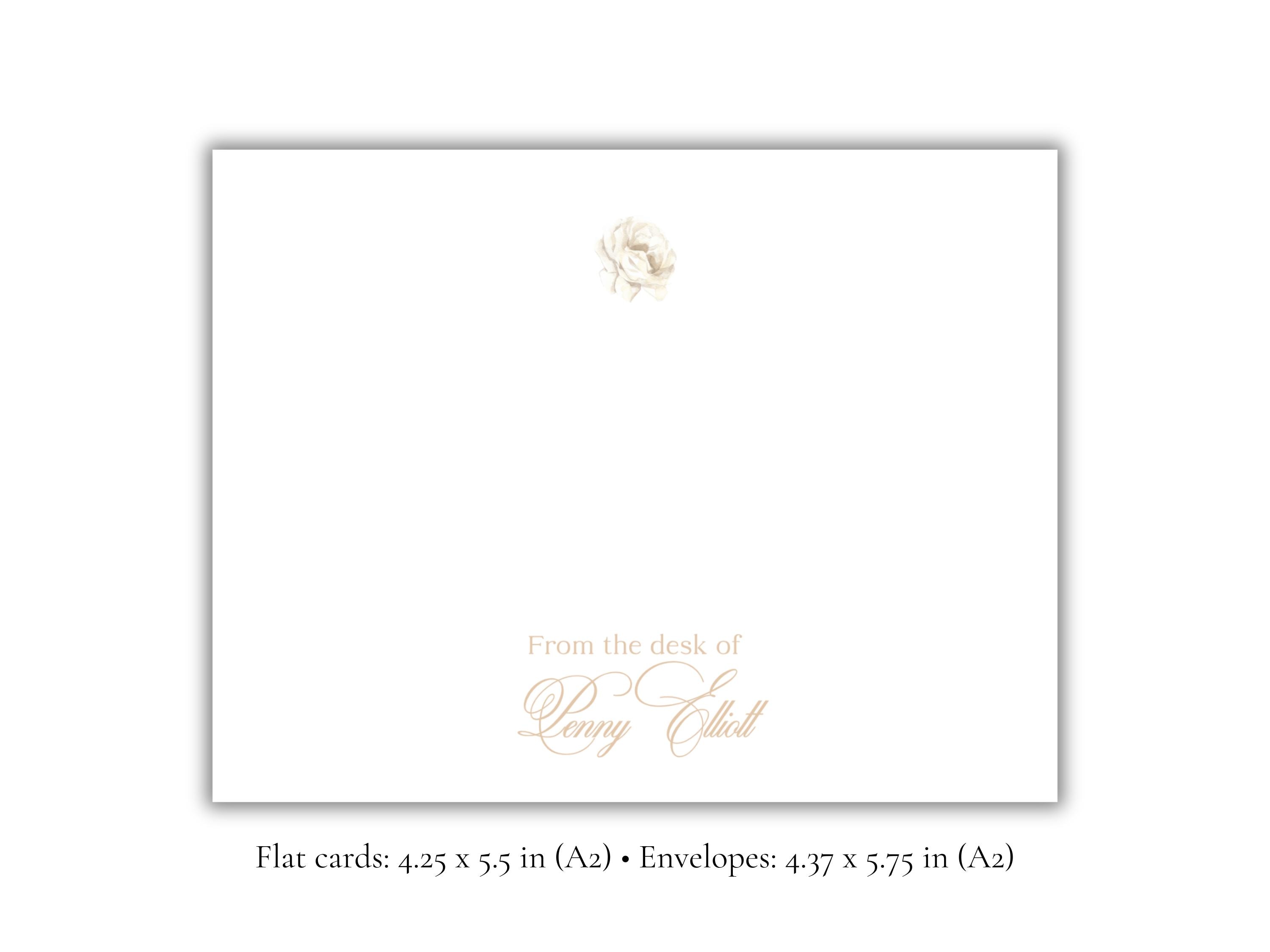 Personalized White Rose Stationery | Elegant Floral A2 Notecards with Envelopes | Custom “From the Desk Of” Note Cards | Stationery Set