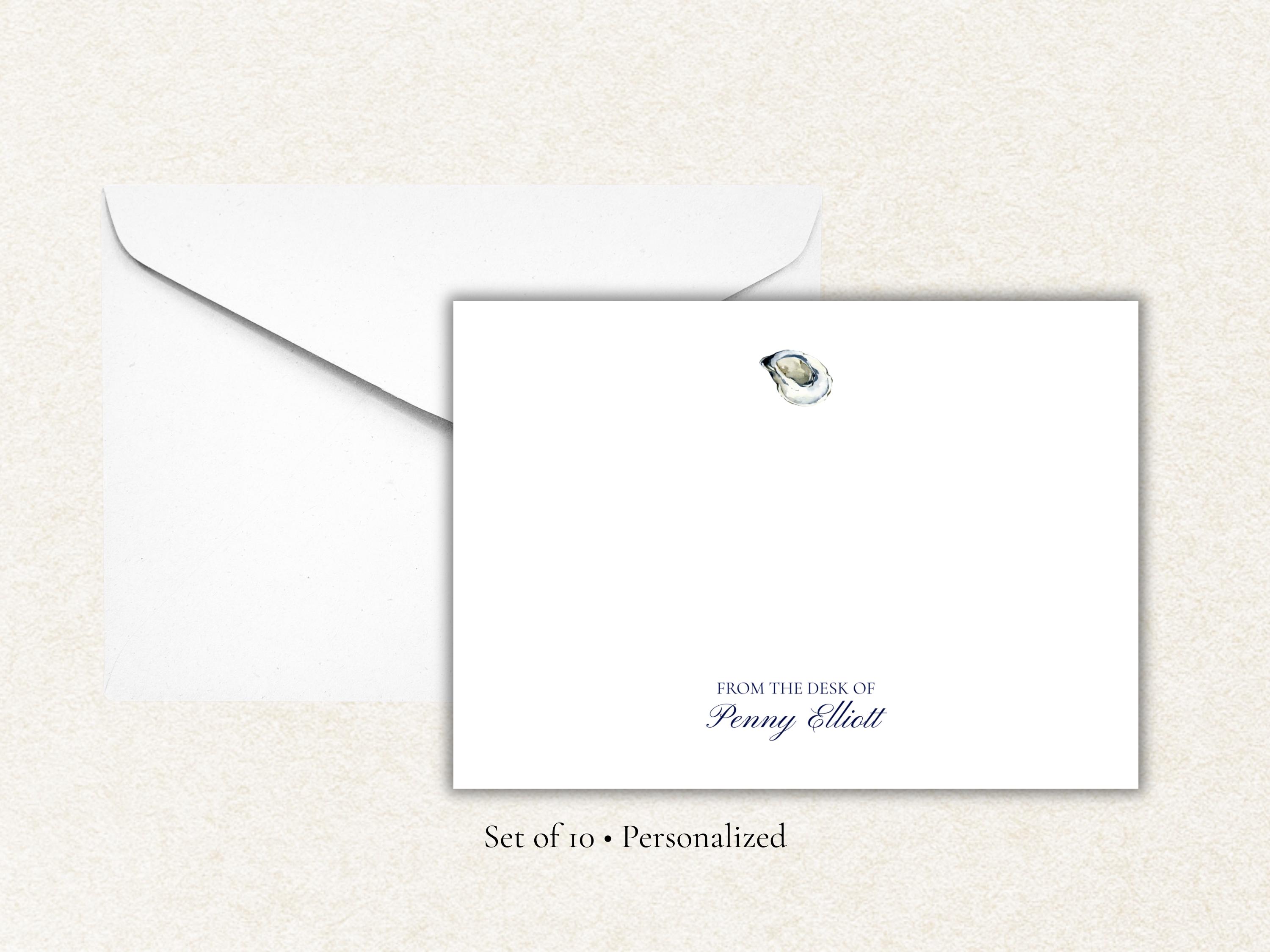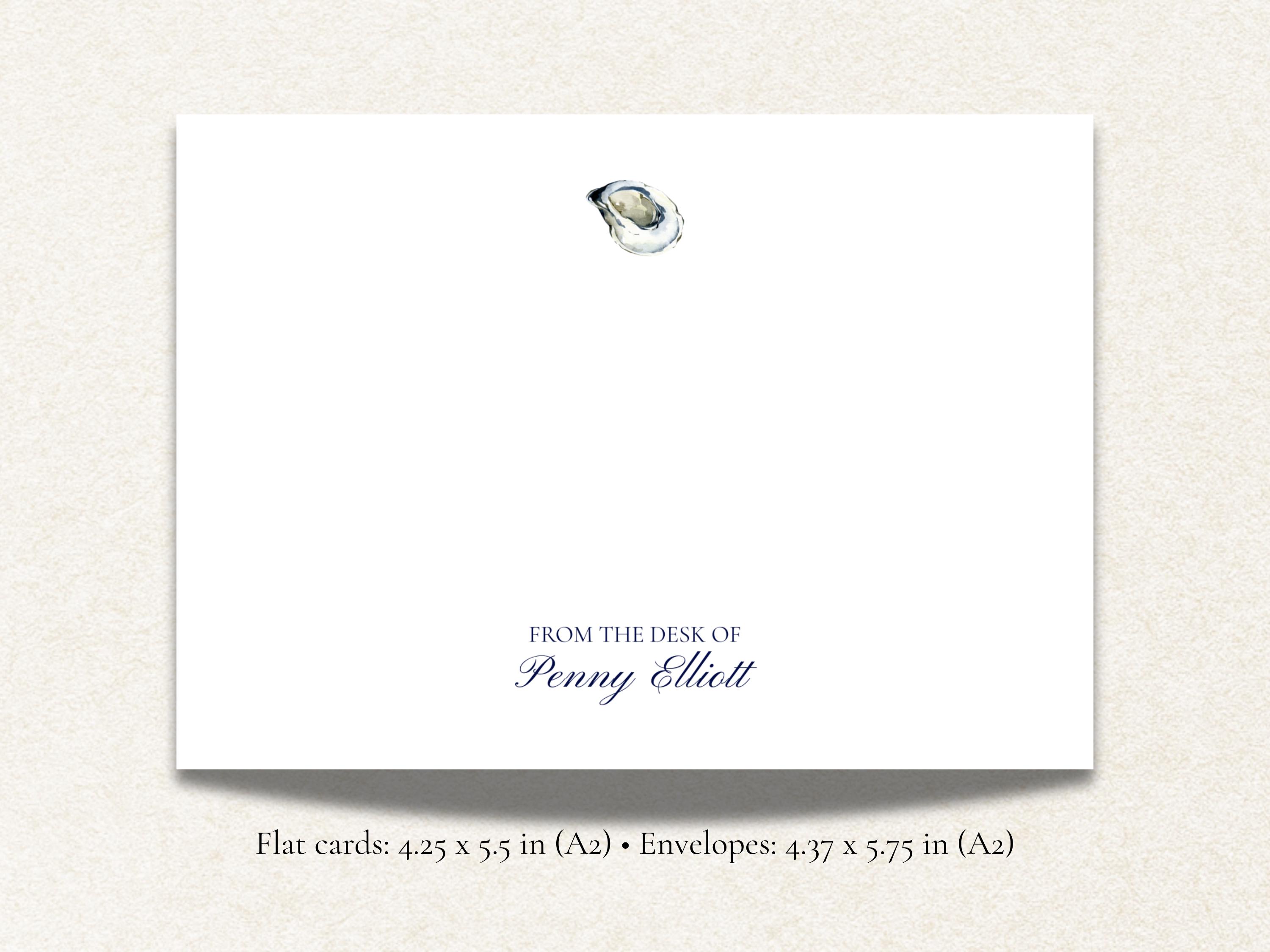Personalized Oyster Stationery Set | Custom Coastal Note Cards | Nautical Flat Cards | Set of 10 Personalized Stationery