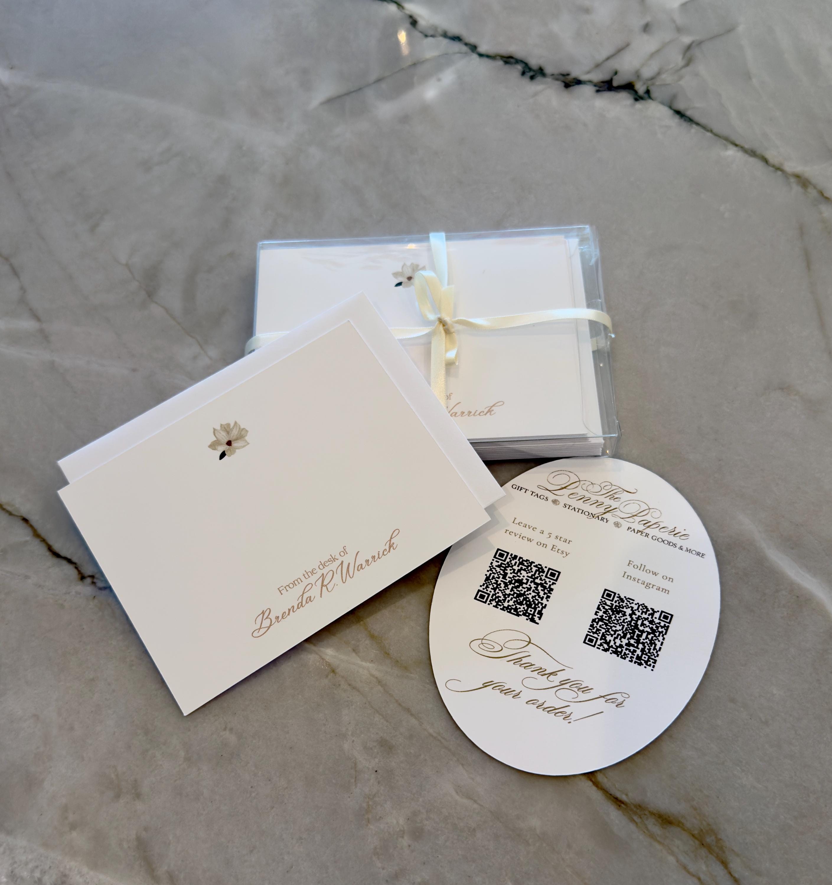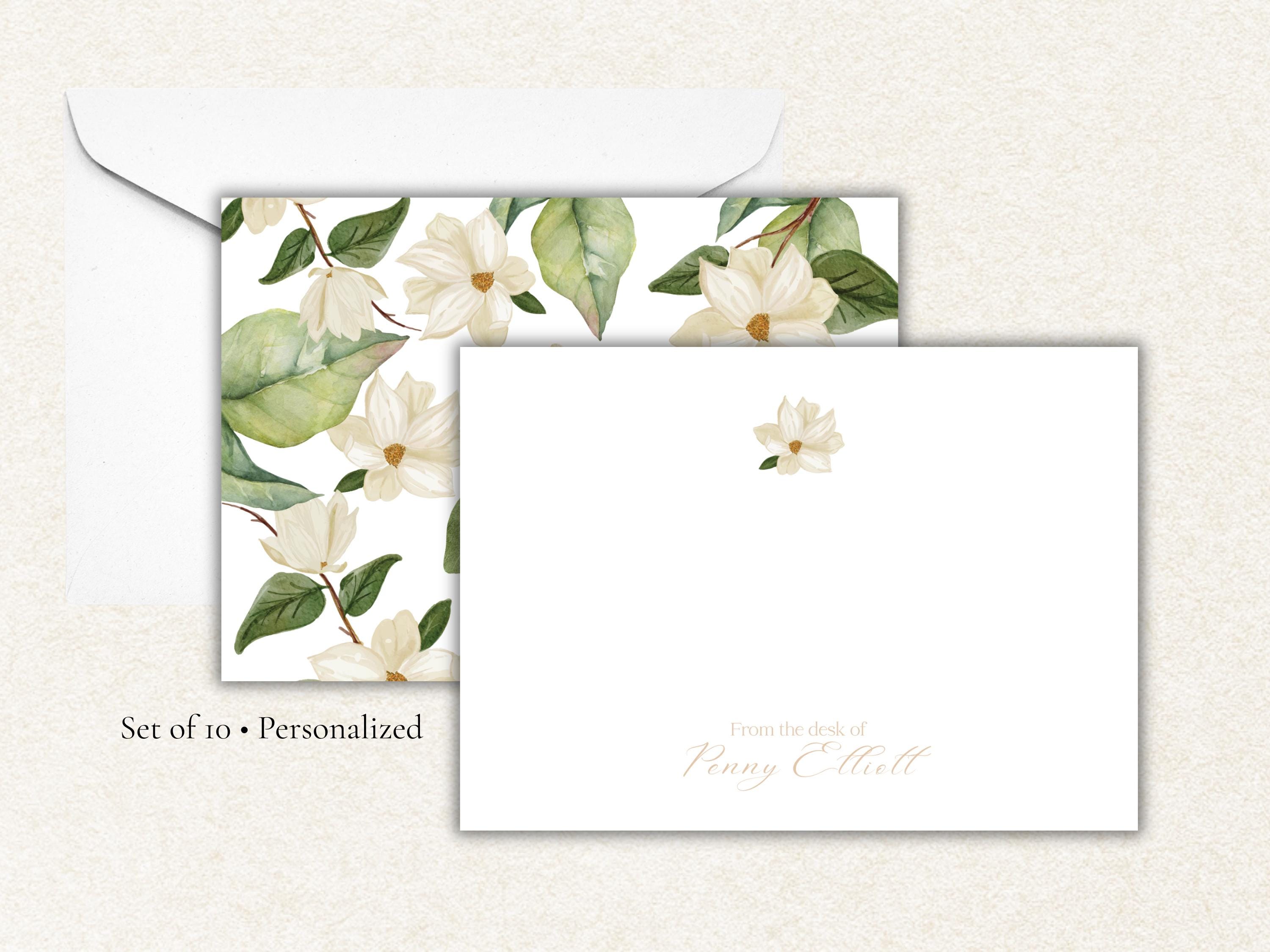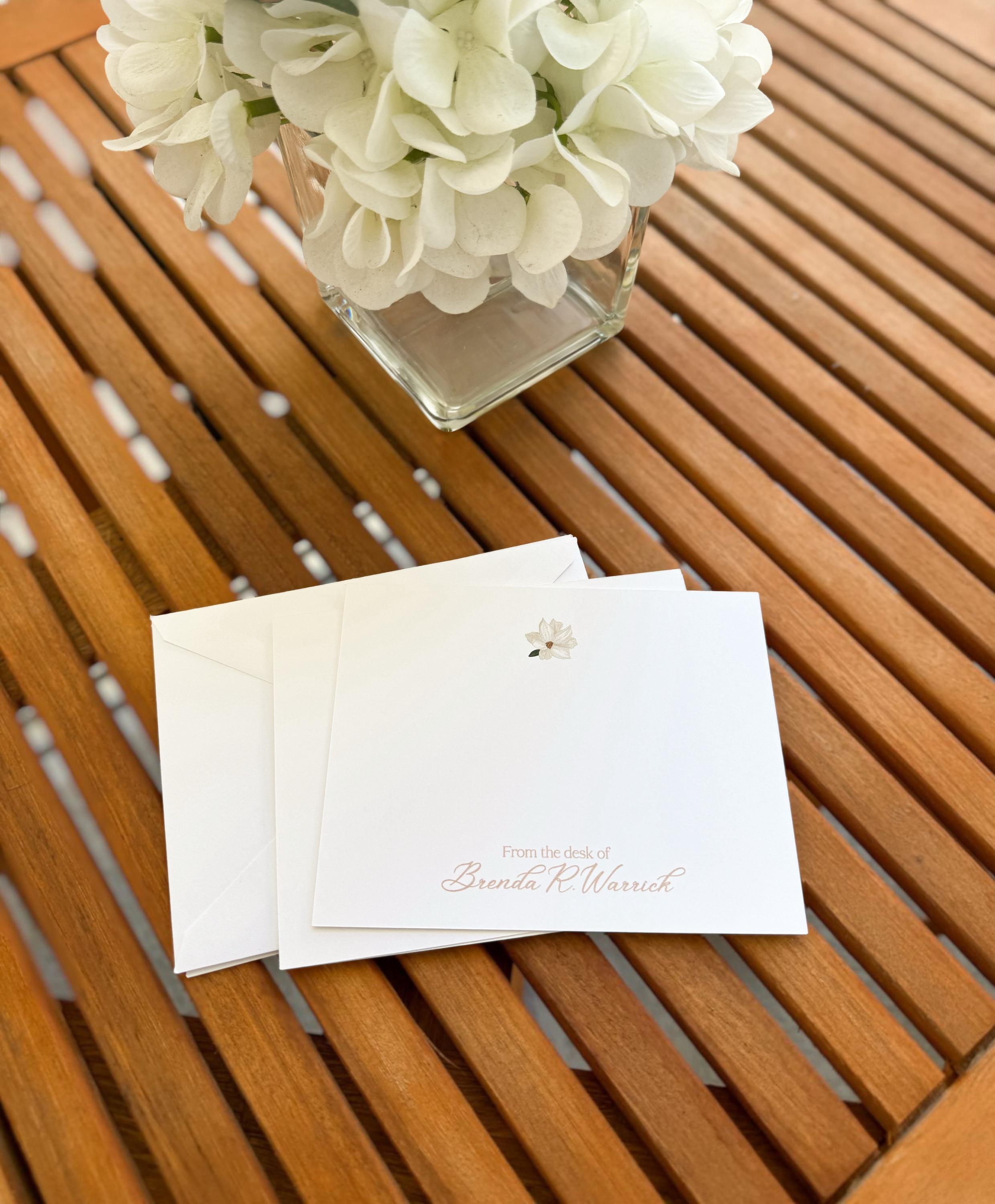 Personalized Stationery Set | Elegant Floral Notecards with Envelopes | Custom “From the Desk Of” Note Cards