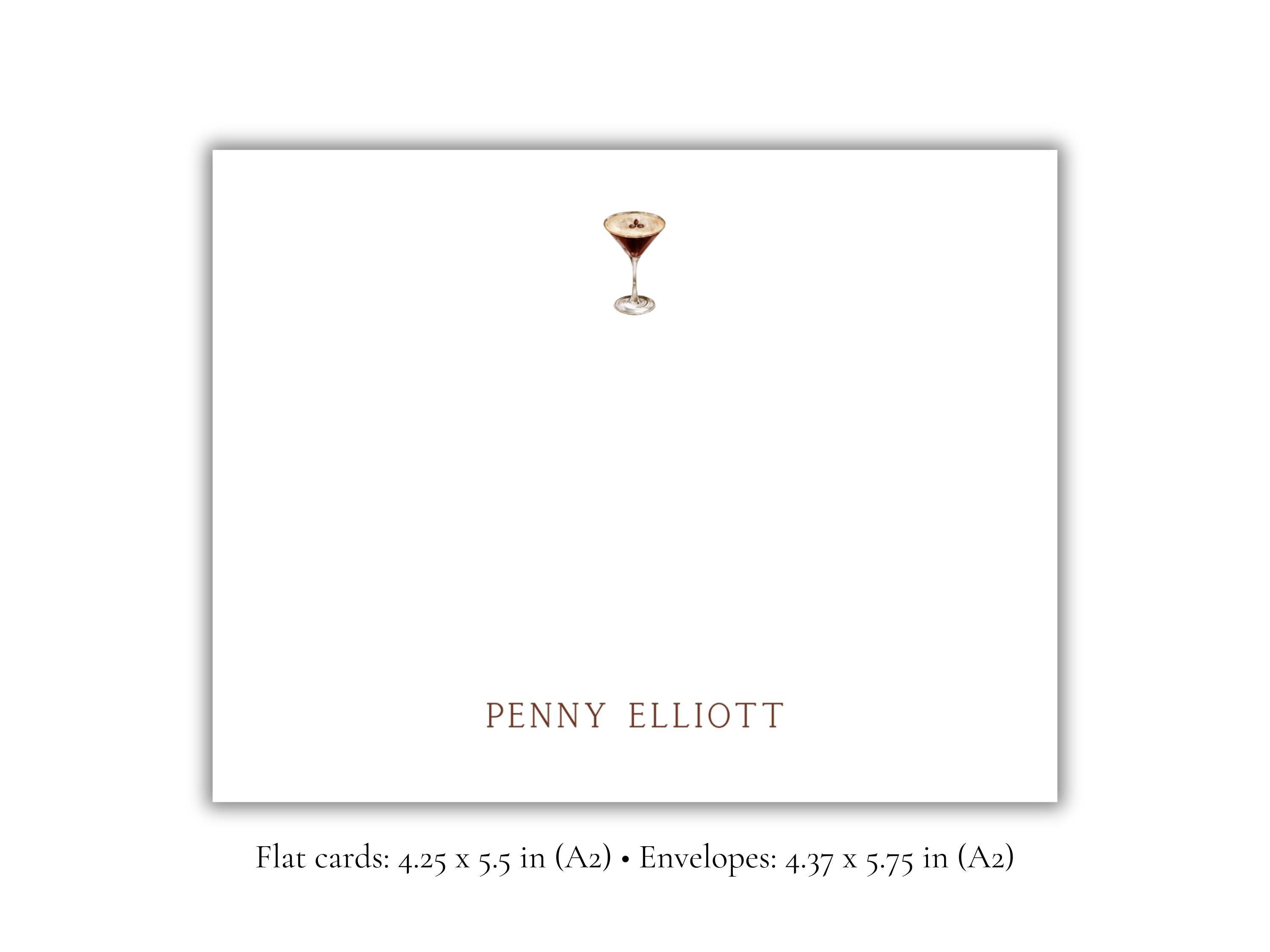 Personalized Espresso Martini Stationery | Custom Cocktail Notecards | Flat A2 Note Cards with Name | Elegant Stationery Gift
