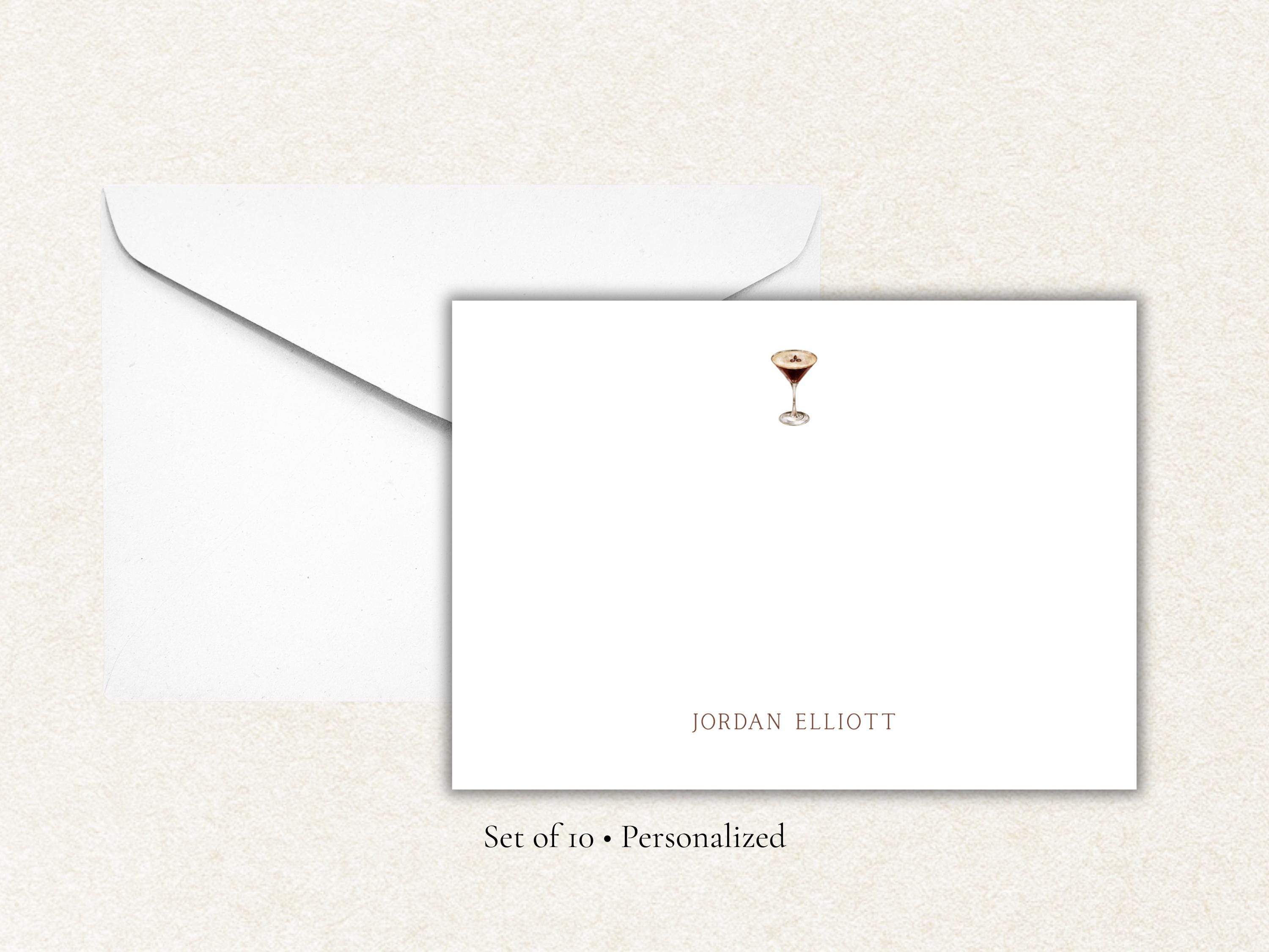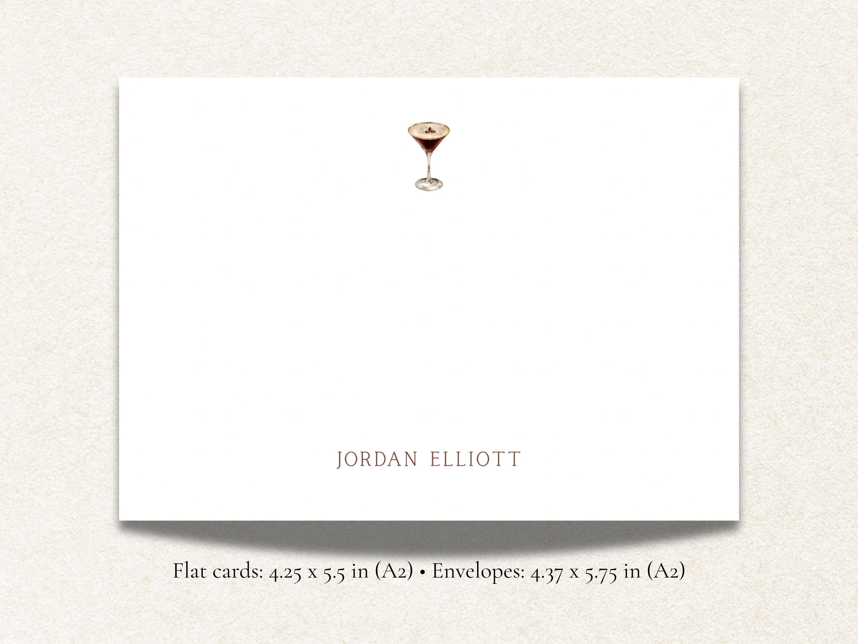 Personalized Espresso Martini Stationery Set | Custom Cocktail Note Cards | Flat Notecards with Name | A2 Personalized Stationery Gift