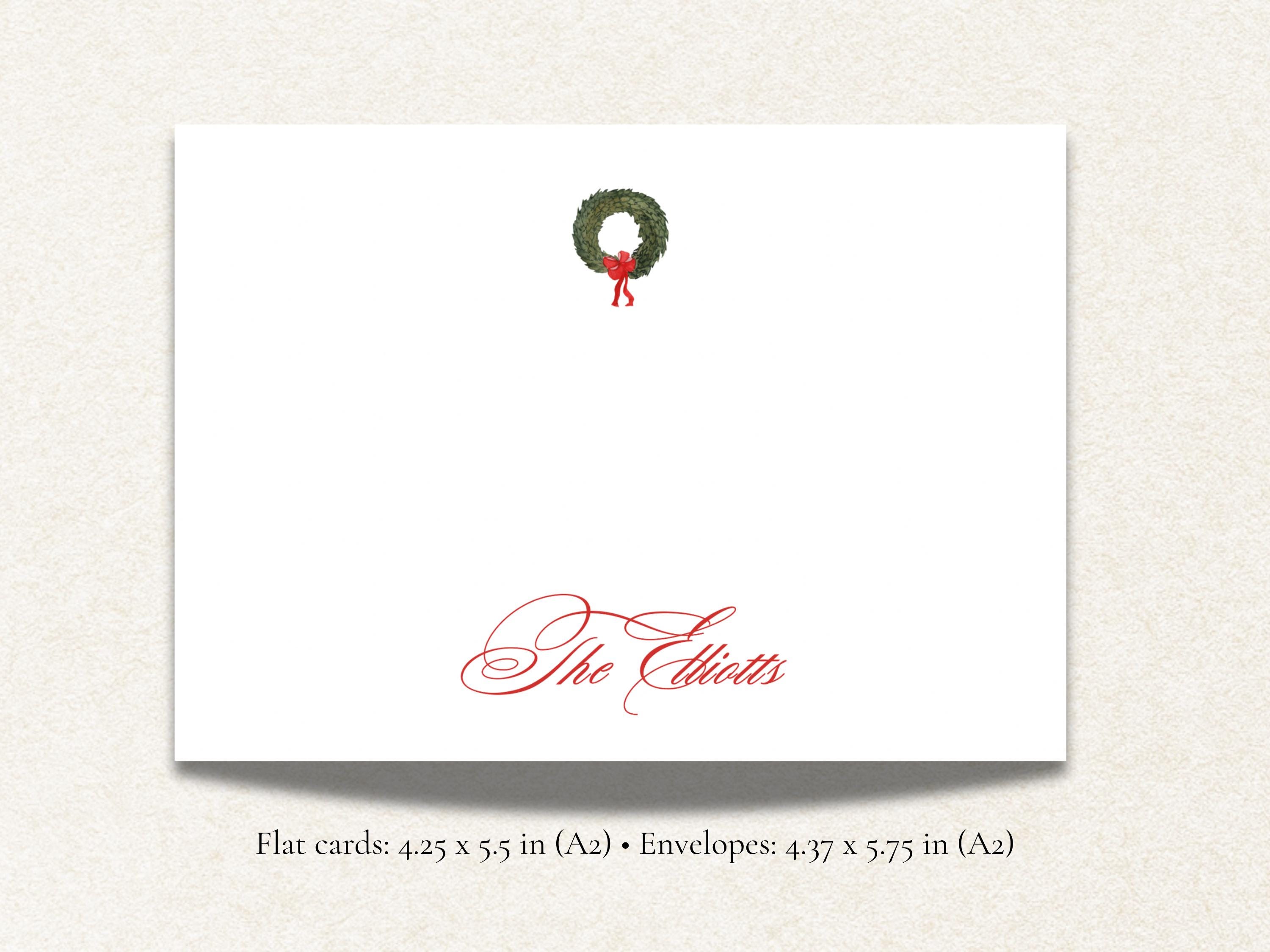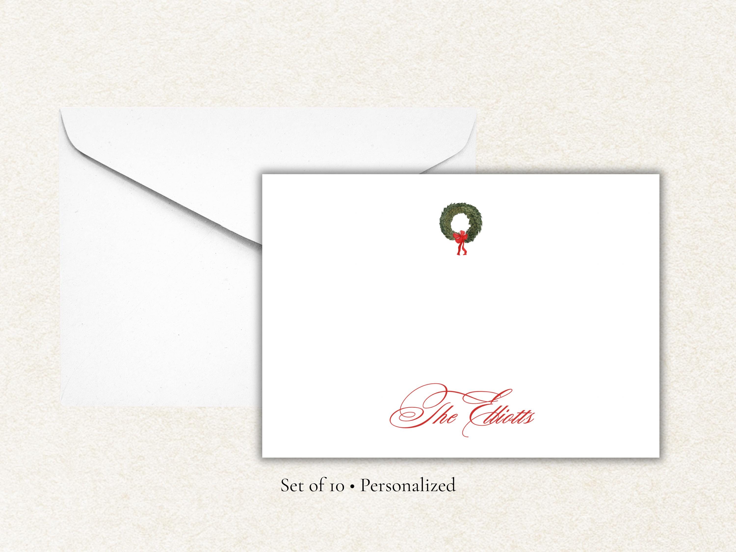 Christmas Wreath Stationery | Personalized Holiday Flat Cards | Custom Note Cards | Elegant Christmas Stationery Set