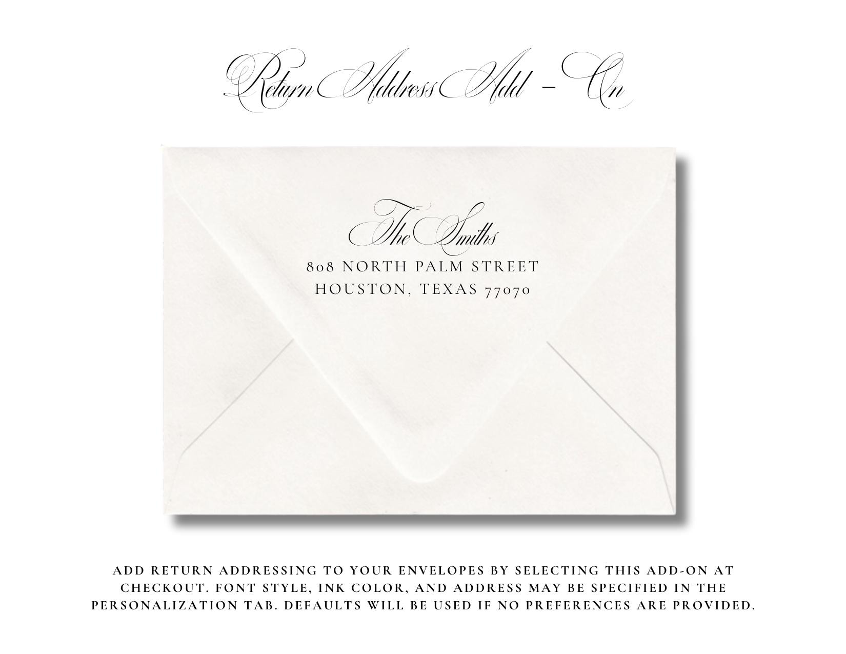 A return address add-on is available at checkout.