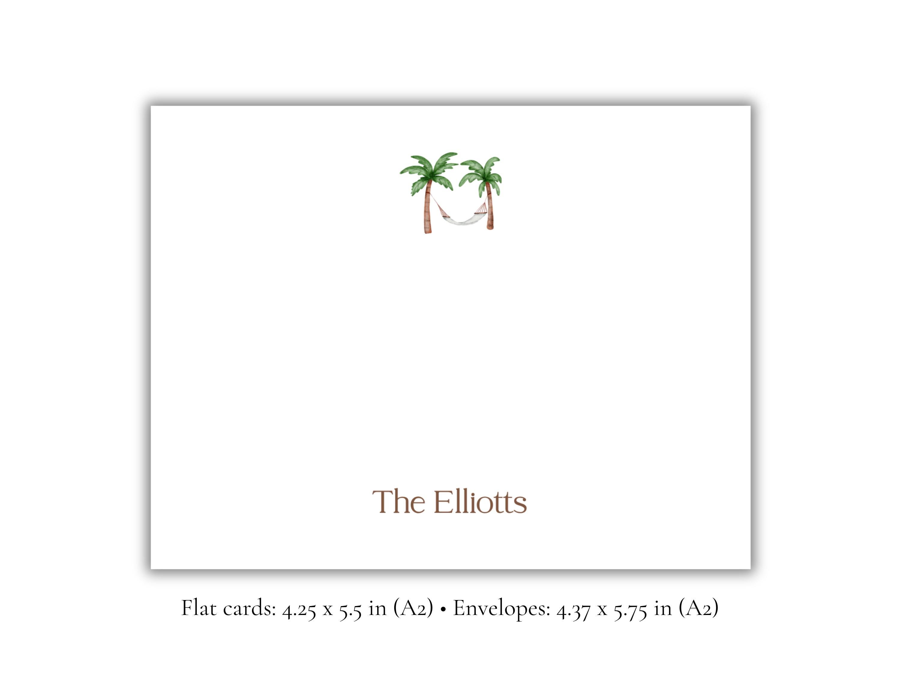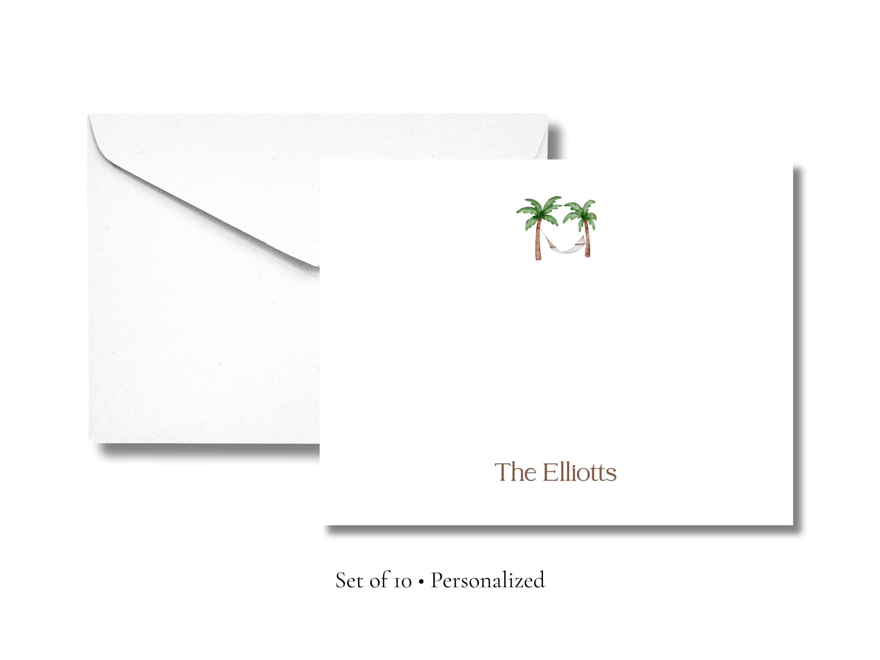 Personalized Palm Tree Stationery | Tropical Flat Notecards with Envelopes | Custom Name Note Cards | Summer Stationery Set | Set of 10