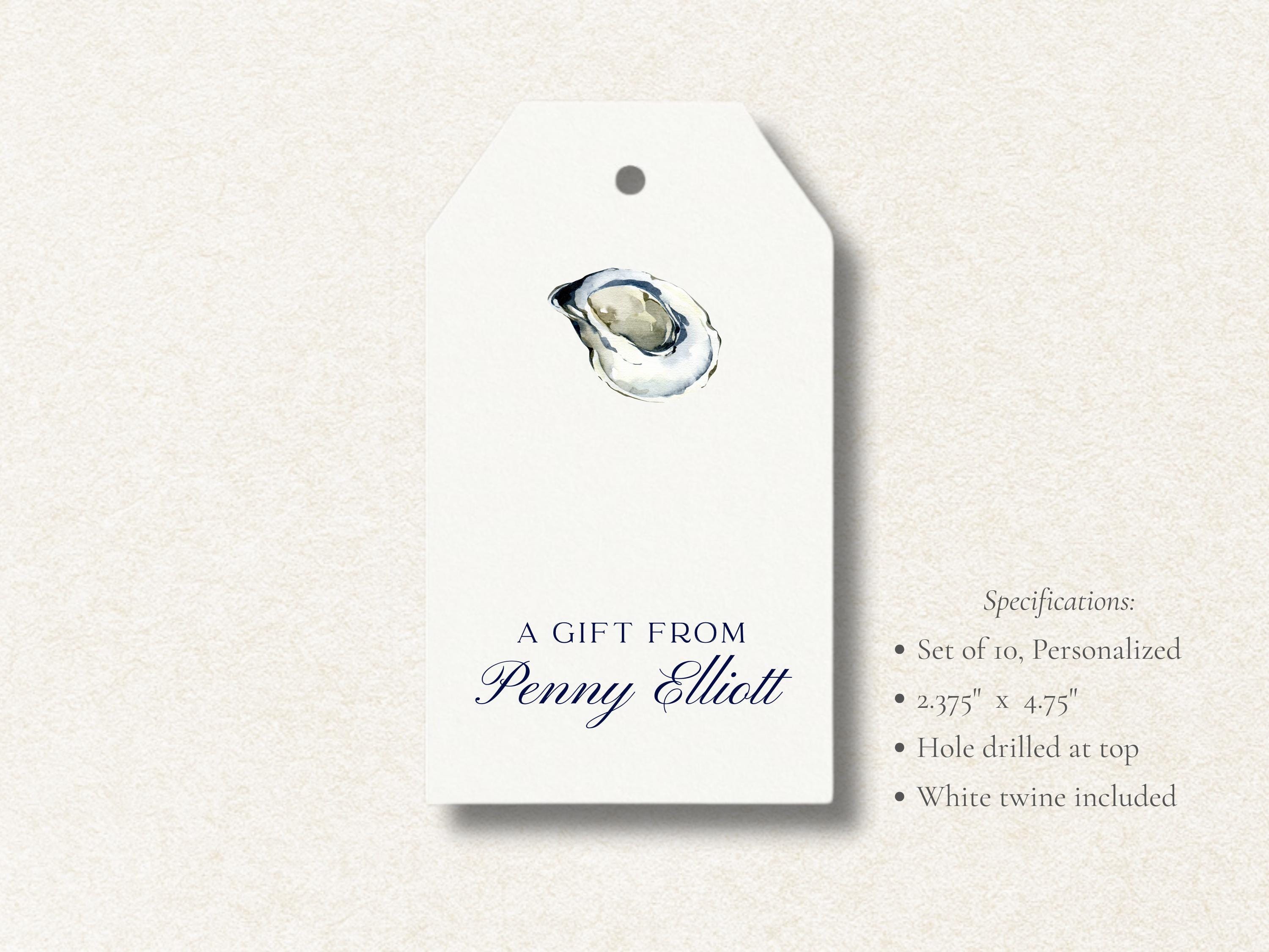 Add timeless elegance to your gifting with these personalized oyster gift tags | Featuring a hand-painted watercolor oyster in soft coastal tones, each tag is customized with your name or message for a polished, nautical touch | Perfect for hostess gifts, weddings, coastal celebrations, or everyday gifting, each tag is created with care to reflect your personal style.