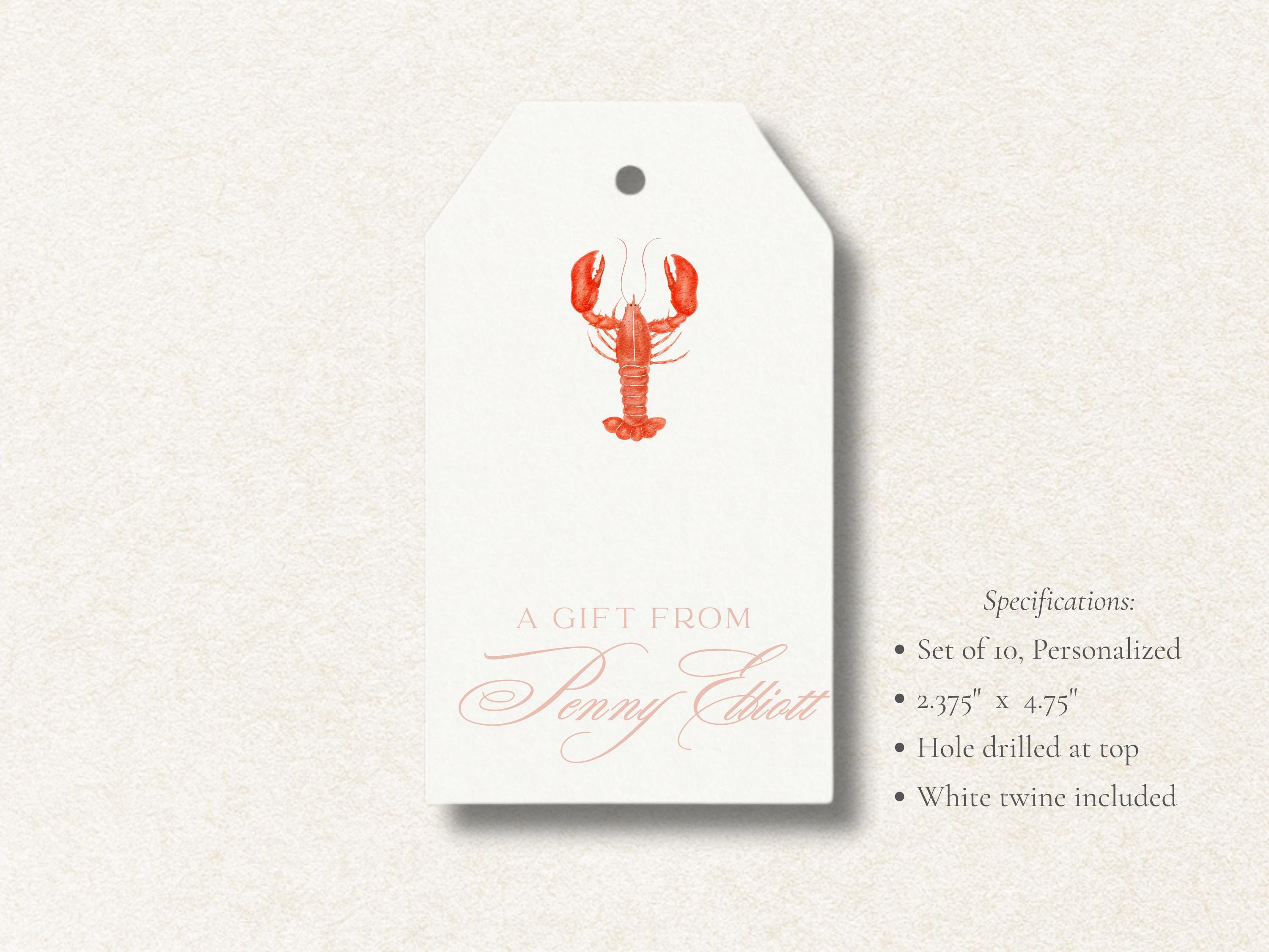 Add timeless charm to your gifting with these personalized lobster gift tags | Featuring a hand-painted watercolor lobster in classic red, each tag is customized with your name or message for a coastal-inspired touch | Perfect for lobster boils, nautical weddings, seaside celebrations, or thoughtful hostess gifts, each tag is created with care to reflect your personal style.