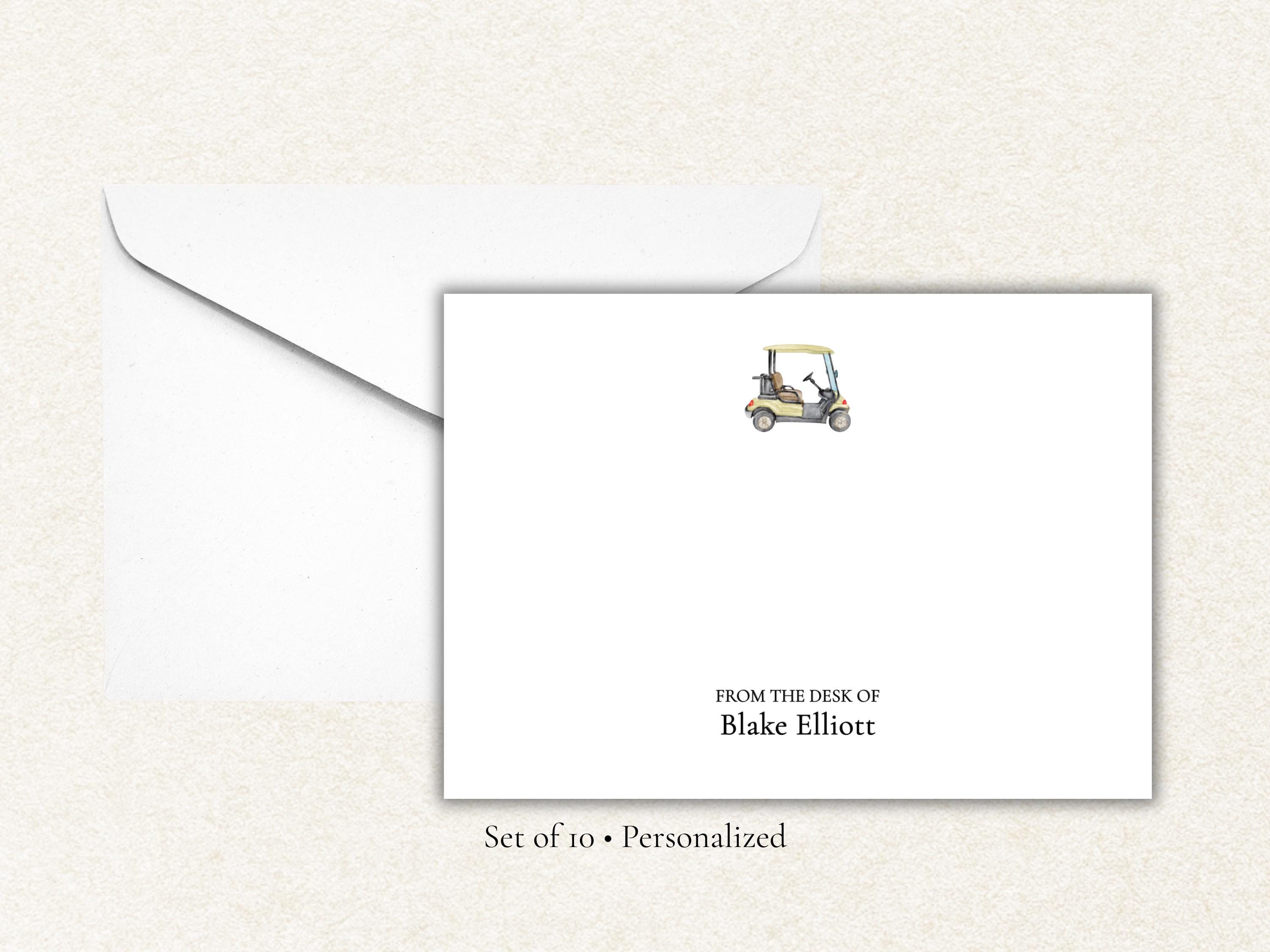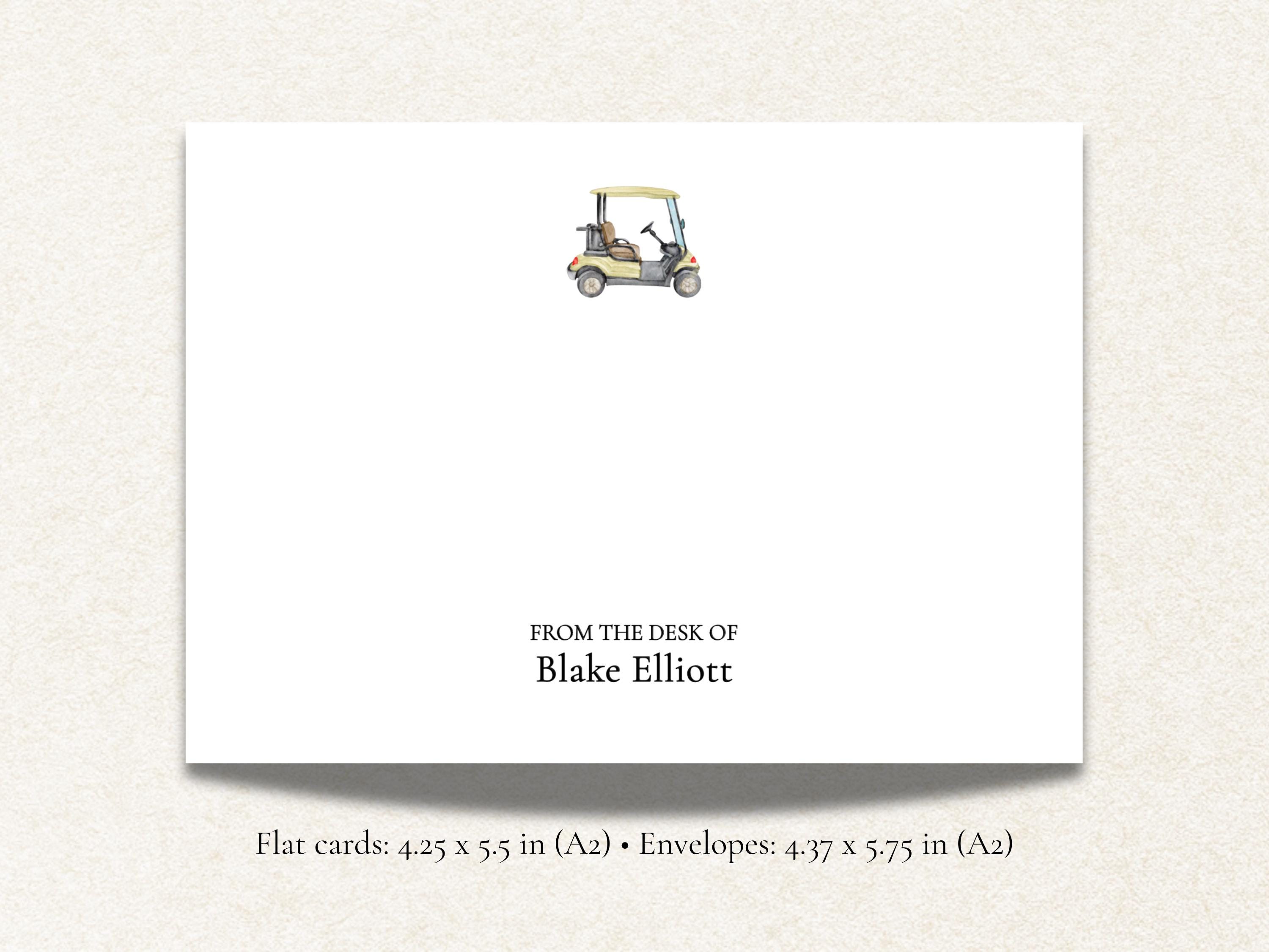 Perfect for the golf lover in your life (or yourself!), this personalized golf cart stationery set is a fun way to send a quick note or thank you. Each card features a watercolor golf cart at the top with your name printed below. The flat cards are printed on thick, high-quality cardstock and come with crisp white envelopes, ready for gifting or everyday use. Great for birthdays, Father’s Day, or anyone who can’t resist a round of golf.