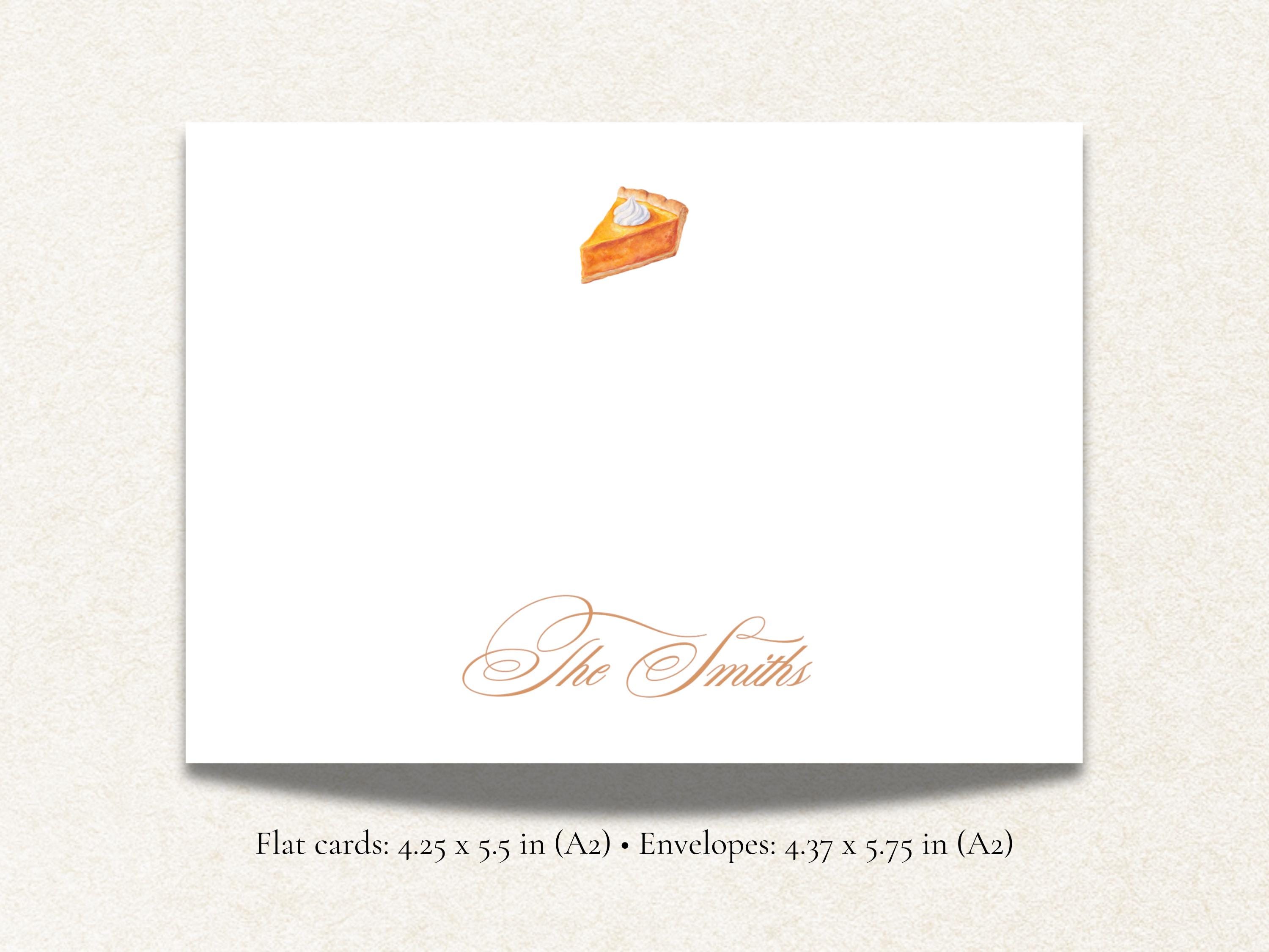 Featuring a charming watercolor pumpkin pie design paired with your family name in elegant script, this set captures the warmth of the season. Perfect for Thanksgiving thank-you notes, hostess gifts, or festive fall correspondence.