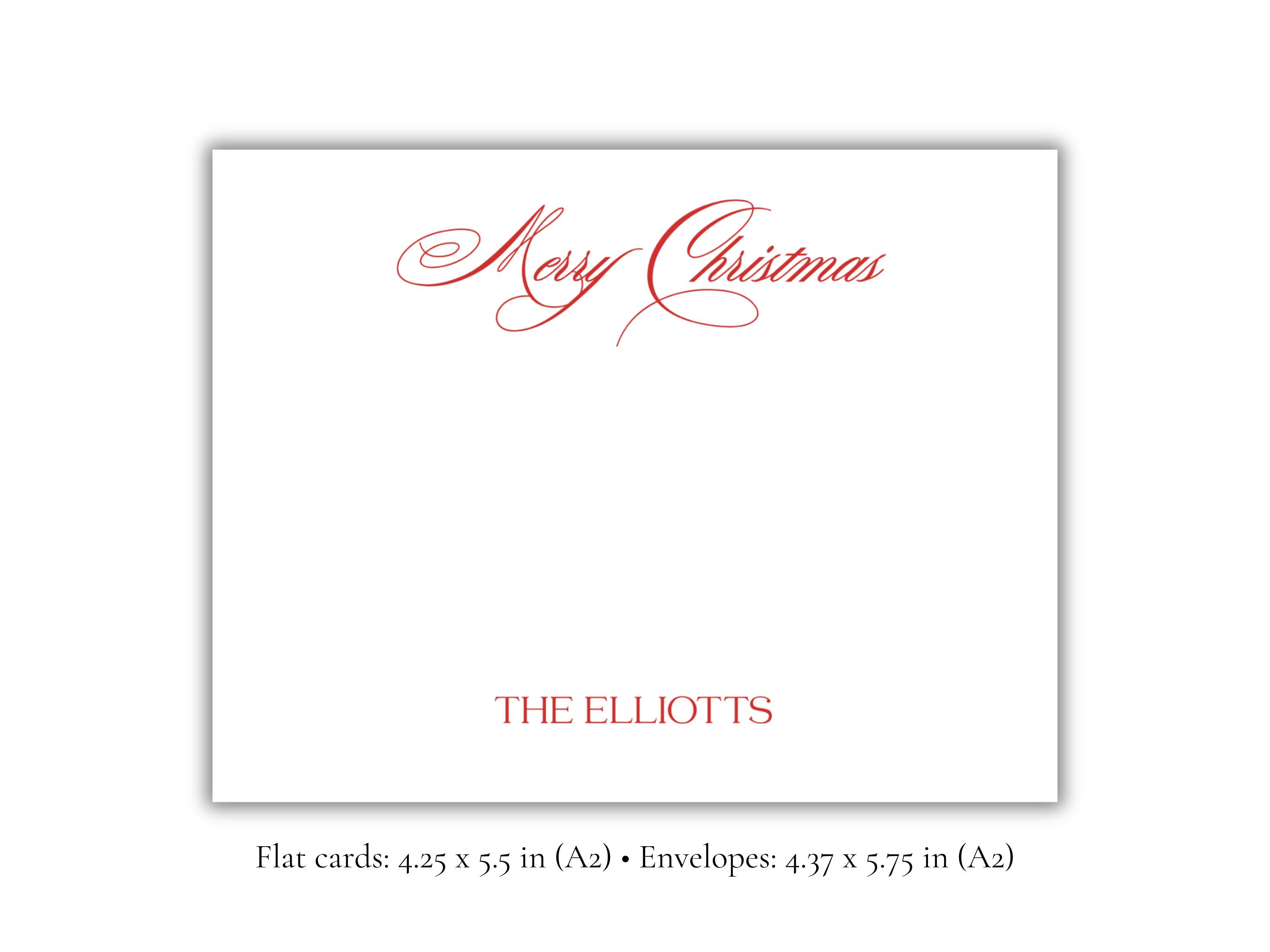 Personalized Merry Christmas Stationery | Elegant Holiday A2 Notecards with Envelopes | Classic Red Script Christmas Cards | Set of 10