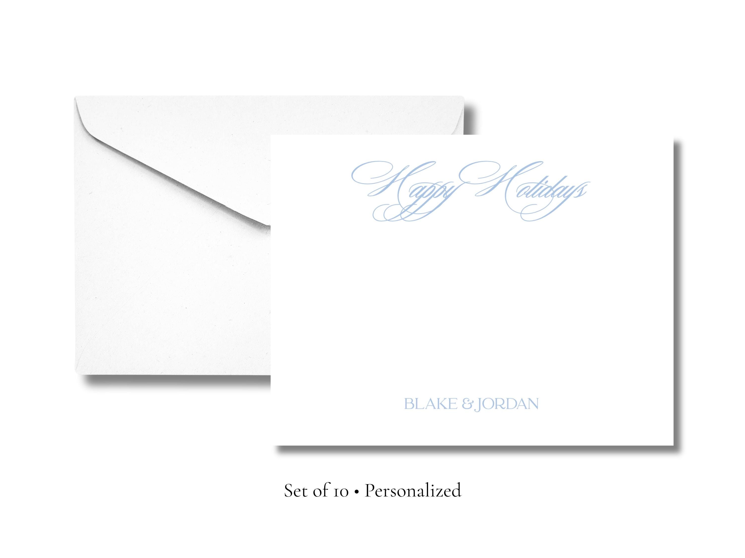 Personalized Happy Holidays Stationery | Elegant Holiday A2 Notecards with Envelopes | Script Holiday Cards | Set of 10