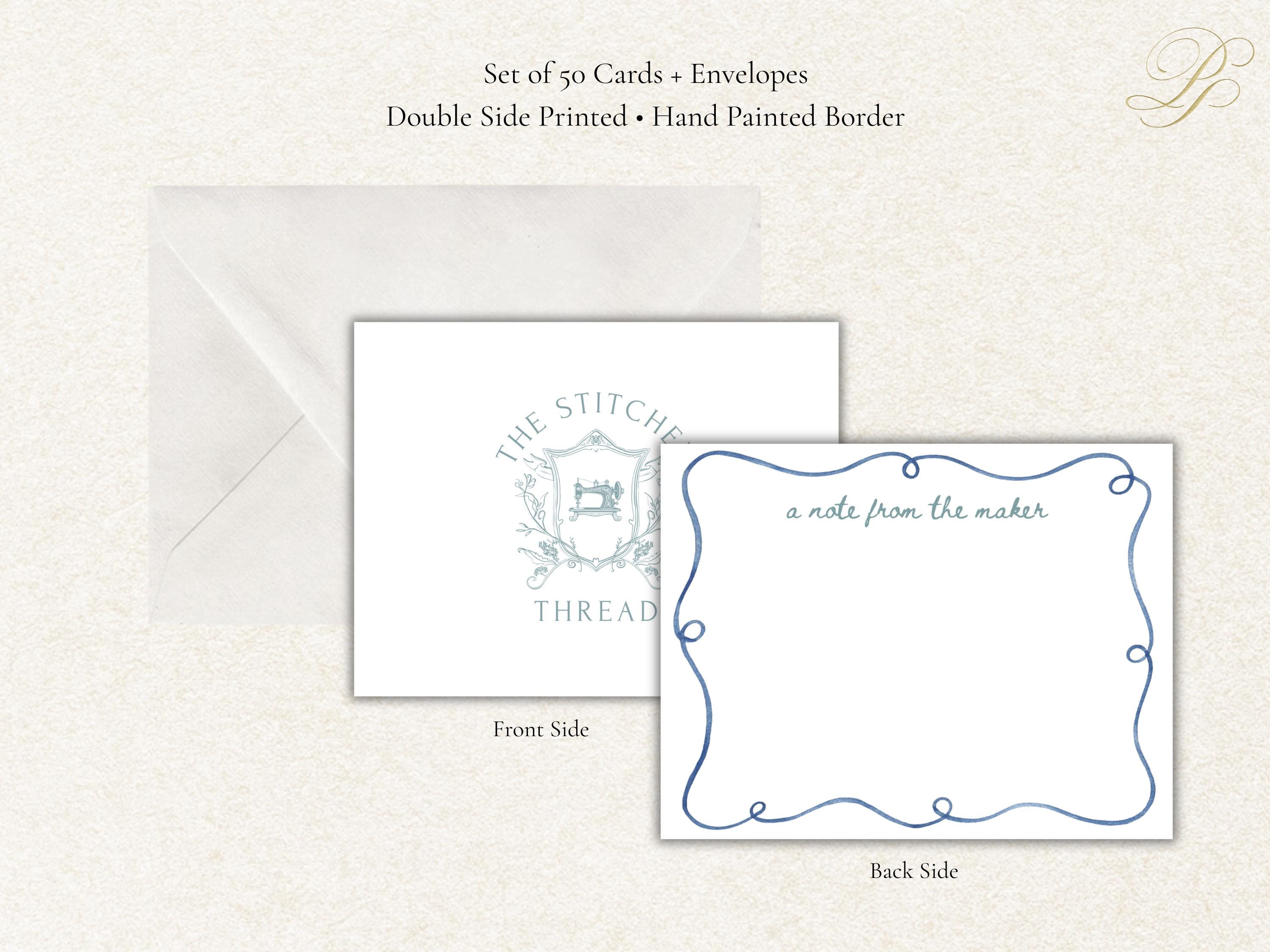 Includes 50 Cards + Envelopes with a Hand Painted Border and Custom Design.