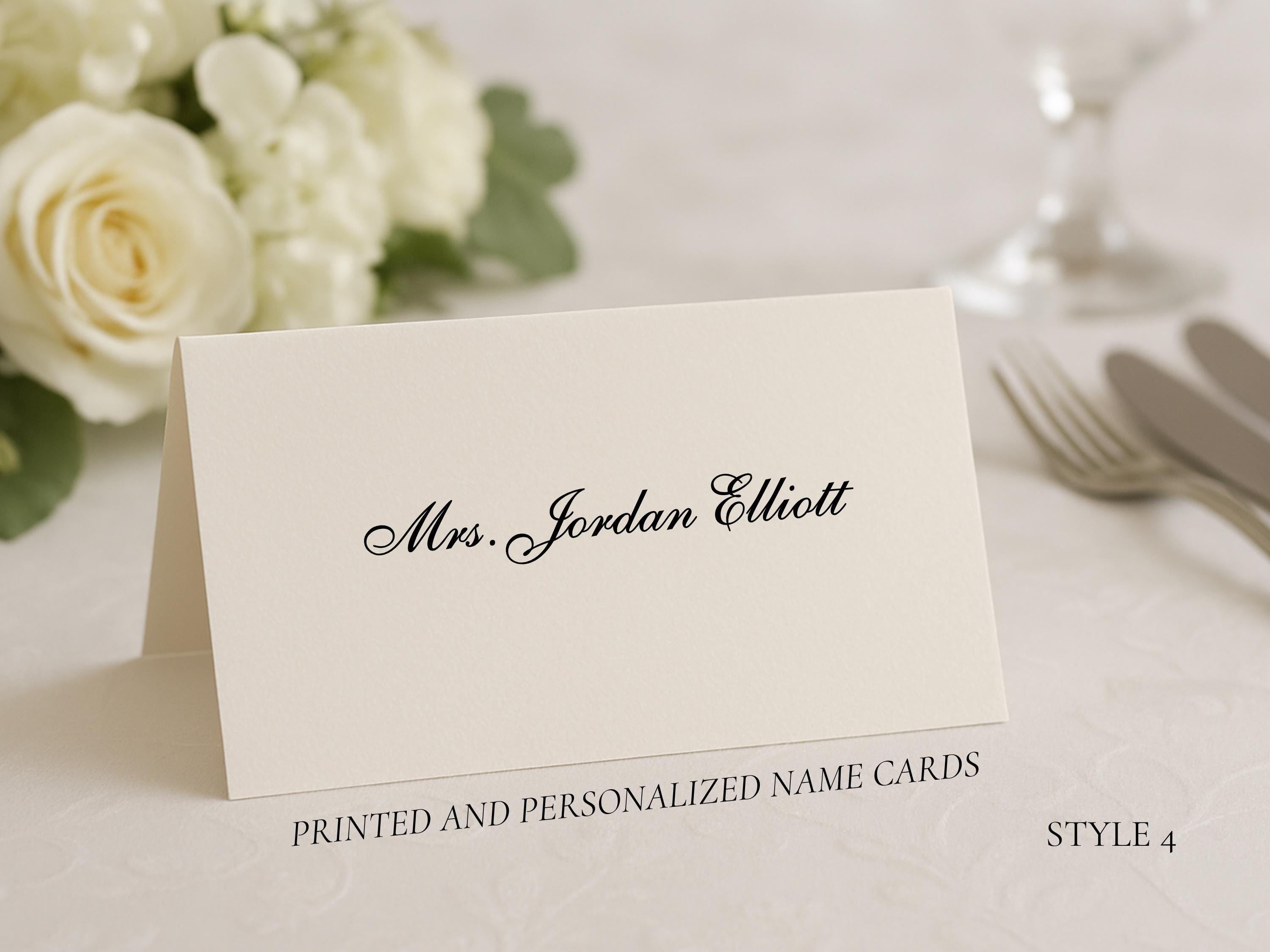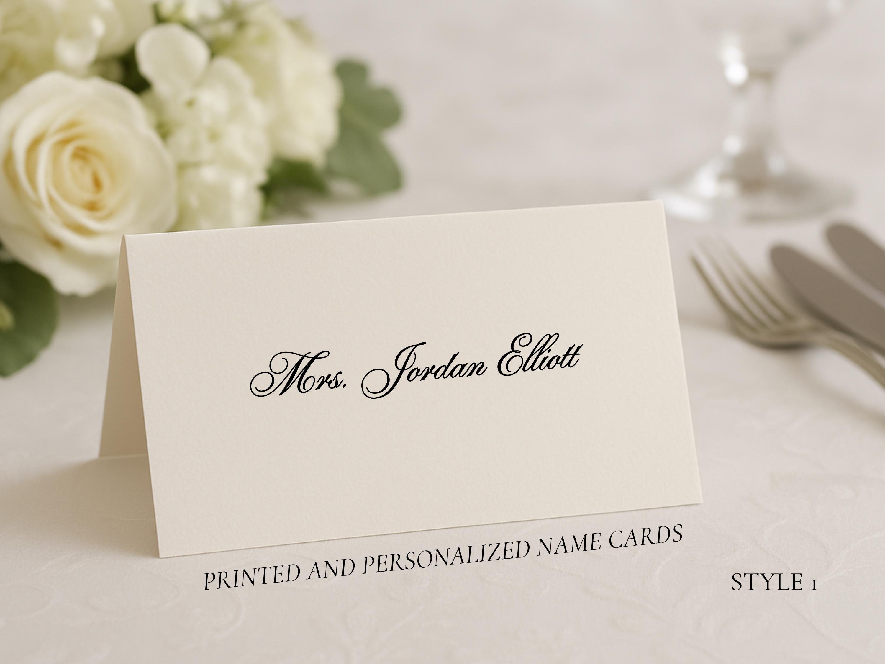 Add refined elegance to your wedding tablescape with these personalized name cards, thoughtfully designed to elevate every place setting. Perfect for weddings, rehearsal dinners, bridal events, or any special occasion, each card is printed with care to complement your unique style and décor.